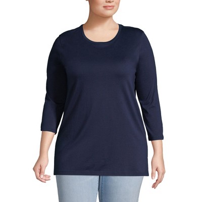 Lands' End Women's Plus Size Sleeveless Power Performance Scoop Neck Curved Hem Tunic Tank - 2x - Deep Sea Navy/White Stripes