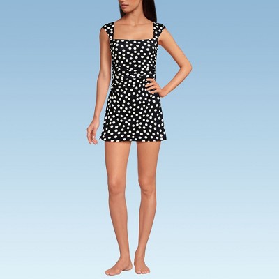 Lands' End Women's Polo Collar Tie Front Swim Dress Swimsuit