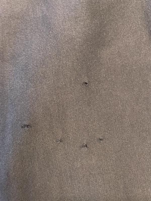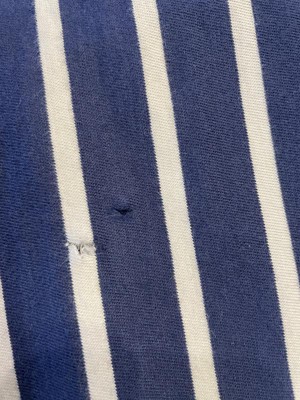 Have noticed that the fabric on these t-shirts has become very thin. An older purchase (short sleeve navy strip) developed 2 small holes. Looks to me like the fabric is raveling. At first I thought it was a fluke, but this newer purchase (long sleeve tee in Navy) has done the same thing except worse. I have only worn this t-shirt perhaps 5 times and it's garbage.
