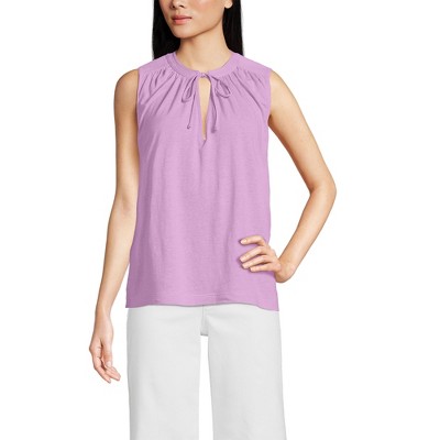 Lands' End Women's Short Sleeve Power Performance Scoop Neck Curved Hem Tunic Tee - X Small - Wild Lilac Pinstripe