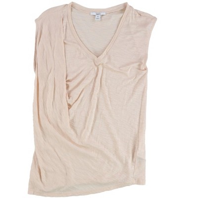 Lands' End Women's Slub Flutter Sleeve Lace Trim Notch Neck Tunic Top