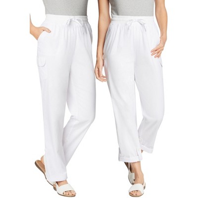 Lands' End Women's Sport Knit Elastic Waist Wide Leg Crop Pants - X Large - White