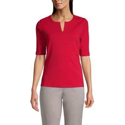Lands' End Women's Supima Micro Modal Elbow Sleeve Balletneck Curved Hem Top
