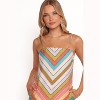 This vibrant masterpiece features a bold multi-chevron stripe print that's as eye-catching as it is chic. Due to the unique nature of this print design, each garment will have variations in pattern placement, which may differ from the product imagery