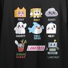 Show off your Lanky Box fandom with this women's black crew neck short sleeve crop top. Featuring stacked images of your favorite characters, this crop top combines playful design with a trendy cut. Made from a soft blend of combed ringspun cotton and polyester lightweight jersey, it ensures comfort and style. Easy to care for, just machine wash it on cold with like colors and tumble dry on low heat.