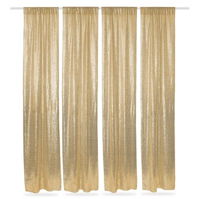 Lann's Linens (Set of 4) Sequin Photography Backdrop Curtains, Gold - 2ft x 8ft Tall Glitter Backgroundsfor Wedding, Party or Photo Booth