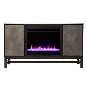 Sold as a set of multiple boxes. Modernize your cozy living space with this electric fireplace console. Textured doors tuck away movies and books, while adjustable shelves let you customize your storage space. Shimmering faux crystal adds ambiance with flickering LED flames, alternating colors, and lifelike embers, all from the convenience of your sofa. Turn up the heat in style with this electric media fireplace.