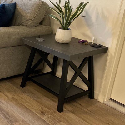 - Industrial end table with black metal frame