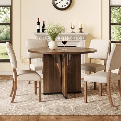 Lantine 39.37-Inch Round Dining Table, Modern Walnut Wood Circular Table with Double Curved Legs for Dining Room, Living Room, Office - 1 of 4