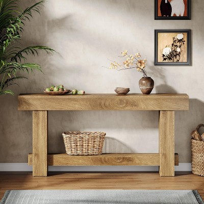 Lantine Solid Wood 41.3-Inch Console Table for Entryway, Farmhouse Sofa Table Behind Couch with Parquet Top for Living Room, Foyer, Hallway