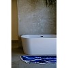 Introducing the pet-friendly Irregular Shaped Blue Wavy Runner Rug, a stunning, washable rug that captures the fluid motion of ocean waves in a beautifully abstract design. The rich layers of blue√¢ ranging from deep navy to lighter sky shades√¢ cascade in undulating waves, creating a sense of movement and tranquility. The wave-like pattern is bordered by a clean white outline, enhancing the contrast and making the colors pop. Perfect for hallways, entryways, kitchens, or even as a bath mat by the bathtub, this rug brings a soothing oceanic vibe to your home.