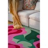 Soft curves and blooming roses define this romantic, freeform rug by designer Maggie Stephenson. Against a fresh green backdrop, vibrant pink roses unfurl in an abstract yet organic arrangement, evoking the charm of a flourishing garden. The irregular edges mirror the natural flow of petals, making this piece feel fluid and expressive. Designed in ultra-soft, pet-friendly polyester, it√¢is ideal for bedrooms, lounges, or any cozy space that calls for a floral touch.