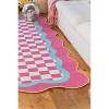 Brighten up any room with our vibrant pink and blue hues. Perfect for children's rooms, living rooms, or even an artistic studio, this rug is sure to inject a dose of color, creating a mood-lifting environment. Its playful colors complement both neutral and bold interiors. Experience the seamless blend of intricate lace designs coupled with a vibrant checkered pattern. Our Pink and Blue Lace Checkered Rug brings to you an amalgamation of timeless artistry and modern flair.