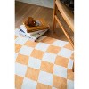 Elevate your space with this geometric and abstract mustard checkered rug, featuring a timeless yellow checkered pattern. The intricate arrangement of checkered and wavy shapes adds visual interest and sophistication to any room. An ideal choice for those seeking a versatile and practical addition to home decor.