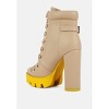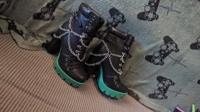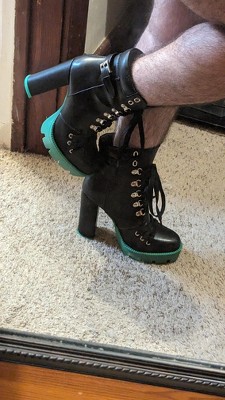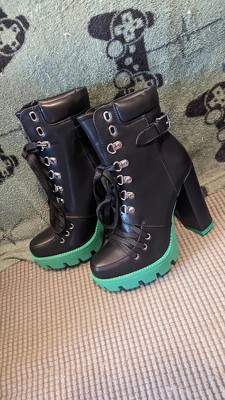 Larch Cushion Collared Biker Boots are Ankle Boots with lace up detail. The colored lug sole platform adds to the look. These high heeled shoes are perfect for any Biker Babe, ready to kill anyone with their unique looks. It is a closed pointed shoe with Mettalic eyelets and a Mettalic buckle at the back. The contrast and uniqueness being its USP, these girls' boots are a must have in your wardrobe. Type: Boot Heel Type: Block Closed Pointed Toe Upper Material: PU Lining: Synthetic Outsole: Rubber Statement Ankle Boot Metallic Buckle at Back Metallic Eyelet Detail Lug Sole Platform Lace Up Biker Boot SH3311