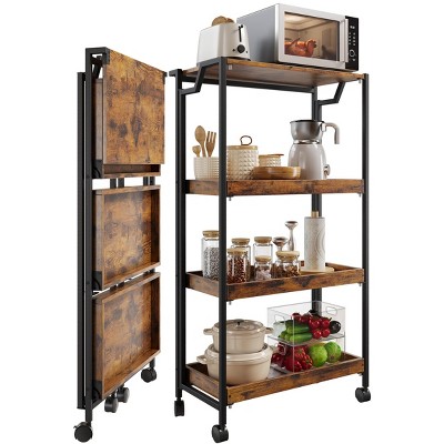 Large 4-Tier Wooden Folding Storage Shelf Cart with Locking Wheel, Expandable Kitchen Organizer Rack, 100 Lbs Loading Heavy Duty