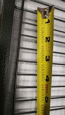 The gaps in between the bars are 5/8". This is listed as a Parakeet cage and with Parakeets the gaps should not exceed 1/2".
