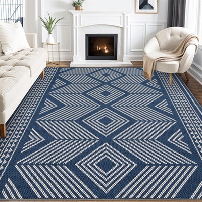 Large 9x12 Area Rug Modern Bordered Washable Rug Non Slip Ultra-Thin Low Pile Indoor Rugs for Living Room
