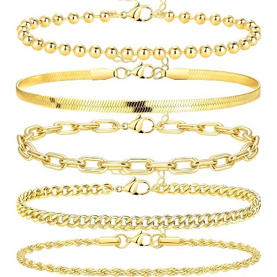 Large Anklets for Women Large Ankle, 14K Real Gold Dainty Anklets for Women Waterproof Gold-5pcs 10
