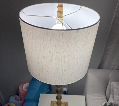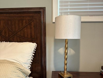 Bring the beauty of bamboo indoors with this Large Bamboo Table Lamp from Threshold™. This freestanding table lamp makes a welcoming addition to your indoor lighting. It features realistic bamboo details in a bright gold finish for a glamorous vibe. The white drum shade offers a fresh modern look and diffuses light with a warm glow, while the simple on/off switch allows for easy operation. Display it on your entryway console or side table in your living room for an effective lighting impact.