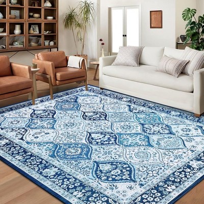 5 x7 Large Boho Geometric Area Rug - Machine Washable, Non-Slip Carpet Farmhouse Neutral Modern Rug for Living Room, Dining Table & Bedroom