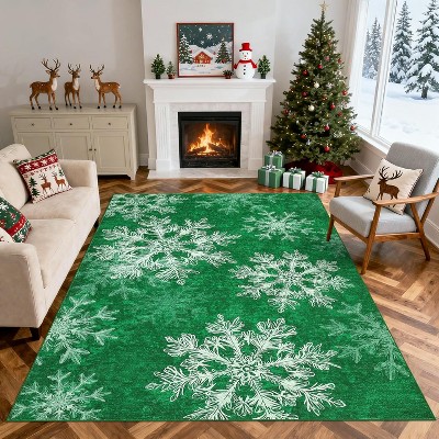 Large Christmas Area Rug 9x12 Washable Rug Non Slip, Soft Non Shedding Xmas Indoor Carpets, Low Pile Thin Foldable Printed Floor Mats