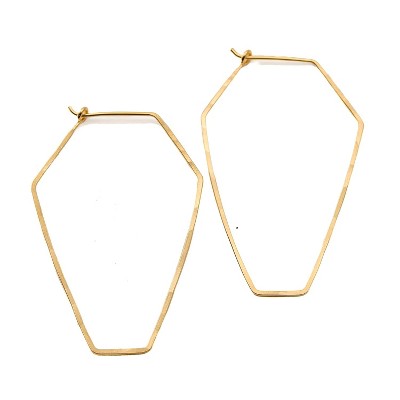 These lightweight coffin hoops are such a subtle and fun way to get spooky for Halloween. They're a nice big piece without being gory, long hoops without a lot of weight. They're lightly hammered for strength and the ear wires slip through a hoop on the back to help hold them in place. Available in bright or blackened sterling silver, gold filled, or rose gold filled.