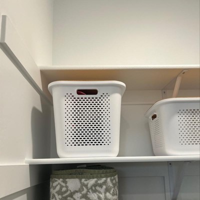 This entire collection is perfect for my needs. I wanted to "hide" my items, but also be able to see them (yes, that's an oxymoron, but it works! The baskets hide enough to make my closet storage managed, but I can see through the little holes to know exactly what's in them. They also come in the perfect length/widths to place on standard shelving. In addition, you can purchase bamboo or black lids to stack or simply cover them (I'm putting sweaters and such in mine). I ordered hang-on bin labels from Am*@z0n, so I will be able to identify what's in them, if needed.