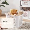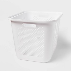 The Large Decorative Plastic Bin with Cutout Handles from Brightroom™ gives you ideal storage for any room of the house. The bin is perfectly sized to store accessories, linens, crafting supplies and more on a shelf or desk. The plastic mesh construction and open top provide airflow and easy access, and cutout carry handles make it a breeze to move around as needed.