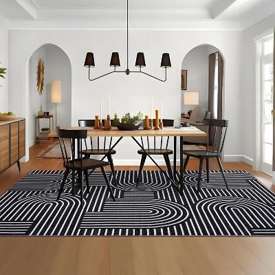 Large Dining Room Rug Washable Geometric Print Carpet with Anti-Slip Backing Stain-Resistant Indoor Mats for Bedroom 10'x13' Purple