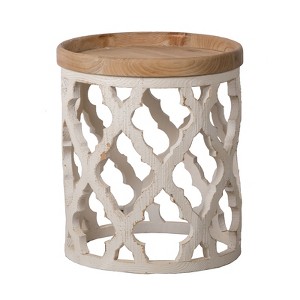 The Design With its simple,vintage design,the Large Distressed White Side Table infuses any room with a casual elegance.Top with colorful blooms,glowing candles,or a stack of books for a decorative touch in a chic living room, airy sunroom, or lavish master bedroom.Durably constructed of 100% wood,this lovely table will add graceful style to your home for years to come.