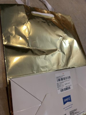 Present your gift in style in this Large Gift Bag Gold Foil from Spritz™. Great for handing out gifts, goodies, sweets, holiday treats and more, as well as oddly shaped gifts that are hard to gift wrap, this large gift bag makes a great pick for handing out gifts on birthdays, special days, anniversaries, or other events and occasions. Showcasing a fun gold foil finish, it's sure to add sweet flair to your gifts, while the tote handles make it easy to carry.