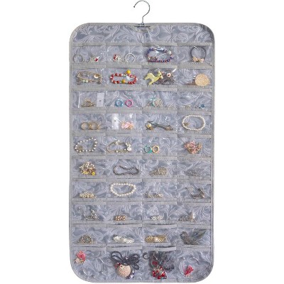Large Hanging Jewelry Organizer with 14 Cotton Zippered Pockets for Travel and Closet