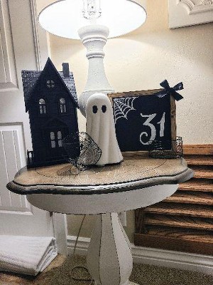 Two stars because this haunted house is cute. But yet again, target has horrible packaging. This item was thrown in a box with other items and arrived broken and damaged along with my paper turkey.