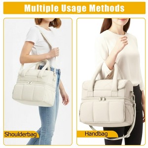 - Fashionable double-layer lunch bag: The insulated lunch box for women features light and fluffy fabric and chic quilted design, weighing only 1 pound, beautiful and easy to carry. The double-layer insulation design effectively keeps cold and warm. The top compartment is perfect for items that are not easy to leak, such as fruits and snacks, while the bottom leak-proof design is perfect for drinks and lunch. This design achieves dry and wet separation, ensuring stability even when full