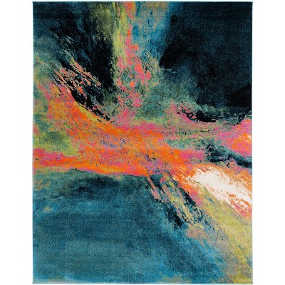 Large Machine Washable Modern Abstract Area Rug 9x12 Colorful Rainbow Floor Carpet Non Skid Non Shedding Soft Thin Rug for Living Room Dining Room