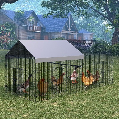 Large Metal Chicken Coop, 86 x 40 in Portable Chicken Run with Waterproof Cover, Outdoor Poultry Pen for Chickens, Rabbits, Ducks, Chinchillas