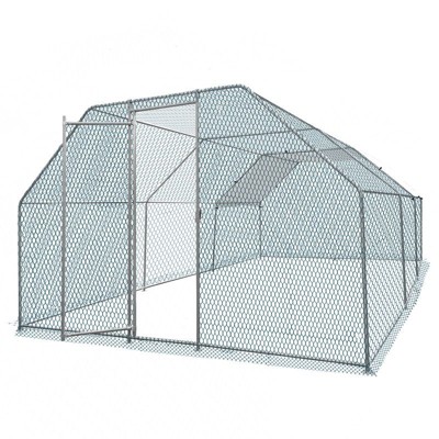 Large Metal Chicken Coop, Walk-in Poultry Cage, Gabled-Roof Chicken Run with Lockable Door and Waterproof Anti-UV Cover