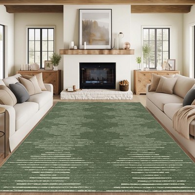 Large Modern Border Machine Washable Rug 9x14 for Living Room, Non-Slip Non Shedding Gradient Soft Rug, Low Pile Foldable Rug
