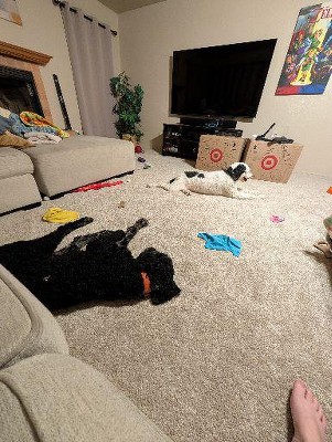 - Features print of a house with Bullseye the dog napping