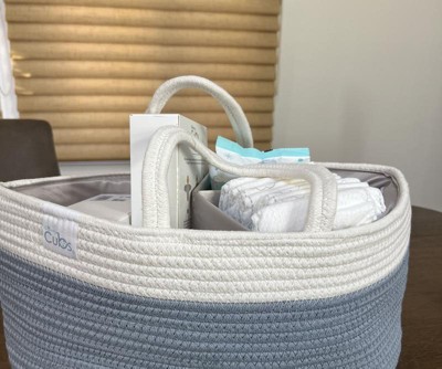- Stylish and Practical: The Comfy Cubs Rope Diaper Caddy is more than just a diaper caddy organizer. Available in three trendy colors: Blush, Pacific Blue, and Sage, it enhances your nursery's aesthetics while providing a practical solution. The generous dimensions of 8.6"D x 14.2"W x 7"H ensure ample storage space.