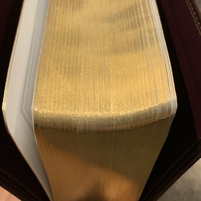 - Gilding: Various editions feature gold gilding