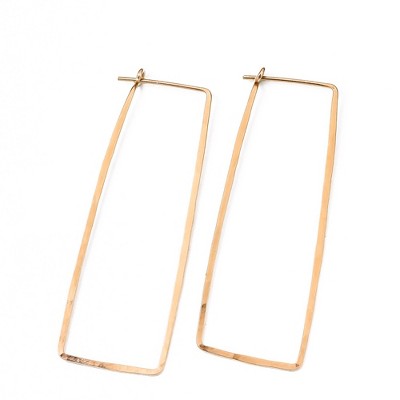 - These hoops feature a shimmery hand-hammered texture and a modern geometric shape. Perfect for day and evening styles. Available in 14K Gold Filled.
