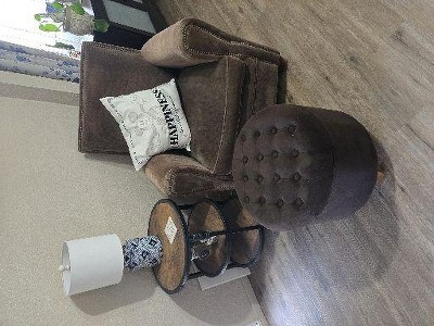 This ottoman matched my old brown chair perfectly. It is just the right height for resting my legs. I like that he holds my blanket, keeps it handy.