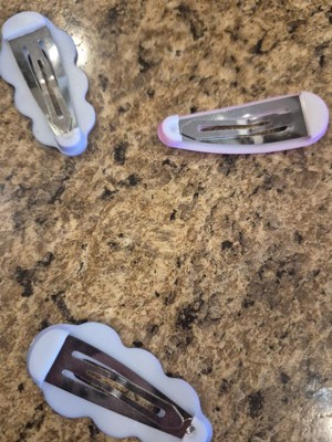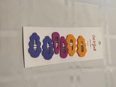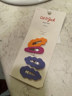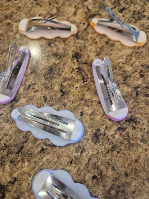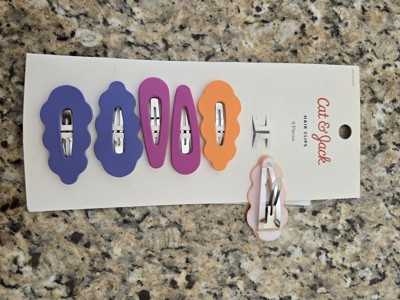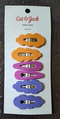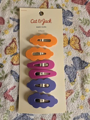 These large and soft Cat & Jack snap gair clips are cute and soft to the touch. They are easy to put in hair and stay in place, but are rather large for my daughter's head. The colors and shapes are fun.
