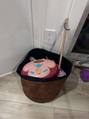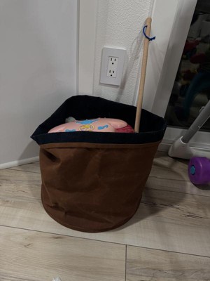 This little 12” tall canvas storage basket is the perfect size for my little boy to keep all his magna tiles in one place. The material is very durable as he drags it around to play. Love the dark brown color.
