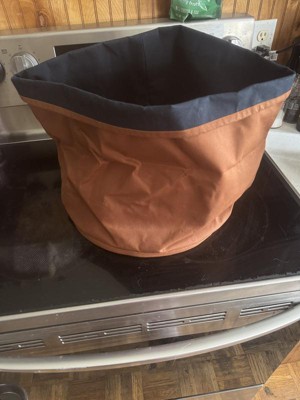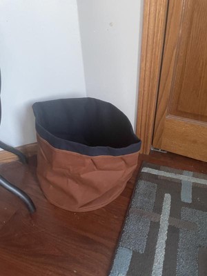 This large canvas tote is versatile to holding multiple different items. I use it for throw blankets, but it would work great in a kids room for their toys, or for your pets toys, or even dirty laundry. It is a great size at 12” H x 14” W x 14” D. For the life of me I can’t get it to take shape and keep shape. It is a very rich neutral shade of brown.