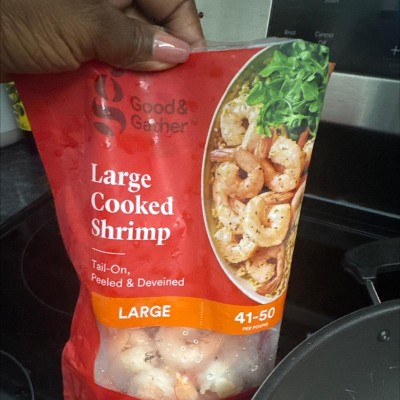 I am one of those closet snobby people that has learned the art of elevated cooking and therefore usually stick my nose up at things like precooked shrimp. I accidentally ordered a bag last month. I meant to be ordering raw shrimp as I find it ridiculously easy to cook and I like to season at my own way first soaking in buttermilk and then cooking in a pot of water "salted like the sea". I was almost horrified when I got home and realized that I accidentally ordered cooked shrimp! I have purchased cooked shrimp prior to learning how to cook, which I'm only a couple of years into, and found it to be quite unpleasant. Unpleasant without exception. It was my mistake though so I'm certainly not going to turn around and take the bag back to Target so I decided to try it out. I am in shock! They are absolutely the count and size that they SHOULD be (most brands aren't) and completely absent of any undesirable smell or texture. They are plump and firm, which is unusual for shrimp that have been deveined and shelled by machine. They have all the plumpness and juiciness that inspires me to give the product five stars. Both my tiny little dog and I eat shrimp regularly as it is extremely high in protein and iodine. Amongst other things that we have in common, which is strange in and of itself, we both recently got diagnosed with hypothyroidism so intake of iodine for thyroid regulation is extremely important and the very high protein content is critically important to maintaining one's skin and hair when having hypothyroidism. She is the real test of quality. I don't know where she got to be such a little snob but she will turn her nose up if a smell or texture is even slightly off. She has never turned down a meal made with these delicious shrimp. Thank you, Target, for choosing only the best to present to your customers. The cost is excellent as well.