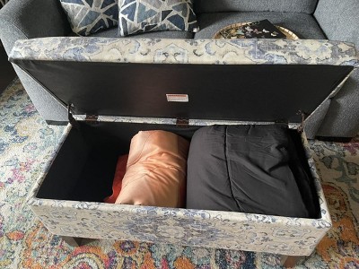 I love this. Great addition to my bedroom seating area. Full storage inside. Made really well. Very happy.