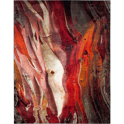 Large Vintage Boho Floral Rug – Machine Washable, Non-Slip, Low Pile Carpet for Living Room/Bedroom in Red (9x12ft)